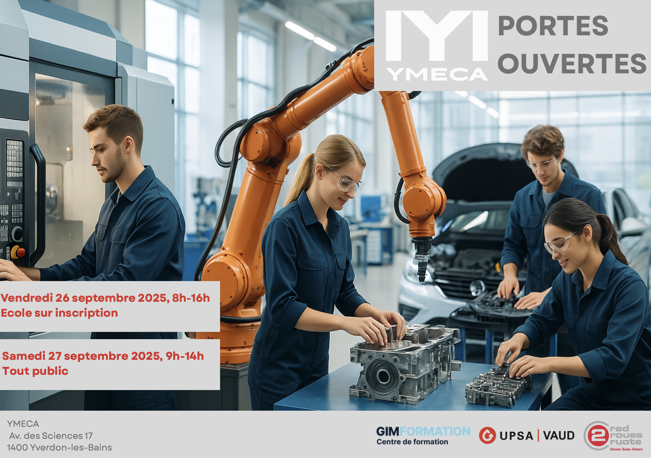 Cette manifestation a pour but de faire découvrir et pratiquer les principaux métiers de l’industrie des machines. Les visiteuses et visiteurs sont accueillis par nos apprenties et apprentis, qui présentent leur quotidien.